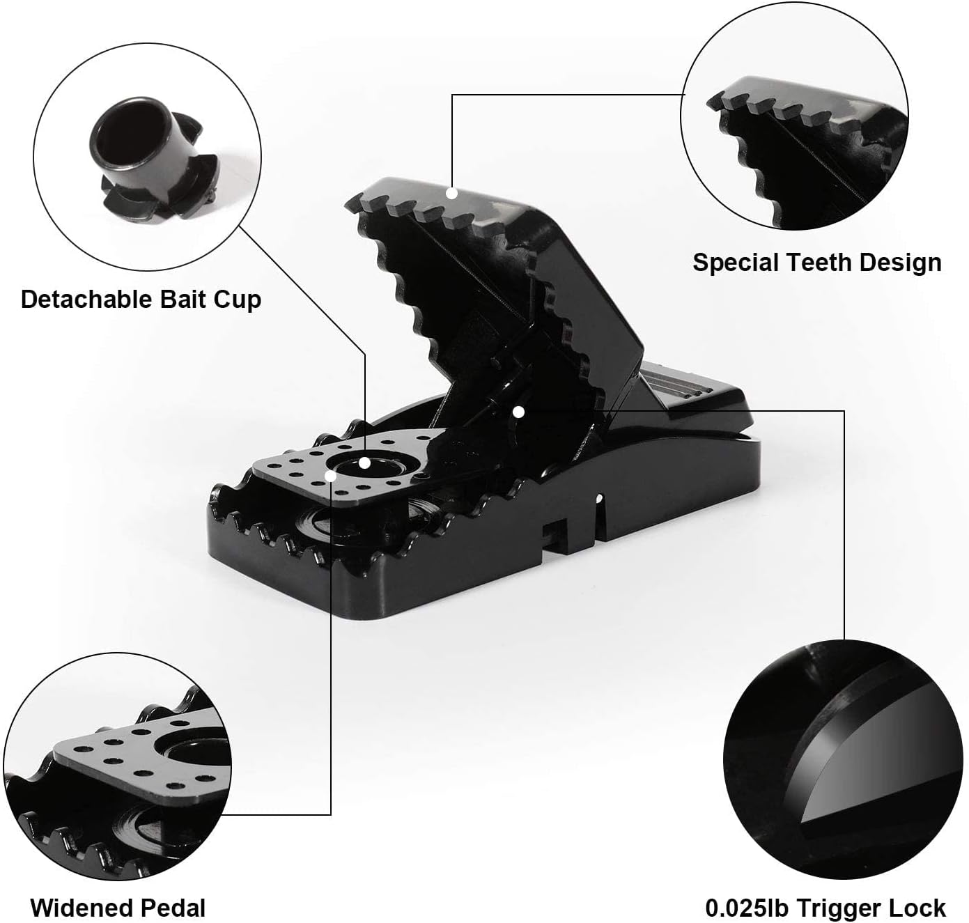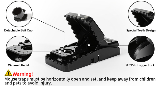 Traditional snap traps have a long history of effectiveness — they rely on a spring action that triggers and catches the mouse quickly. The idea behind this set is to combine that proven approach with: