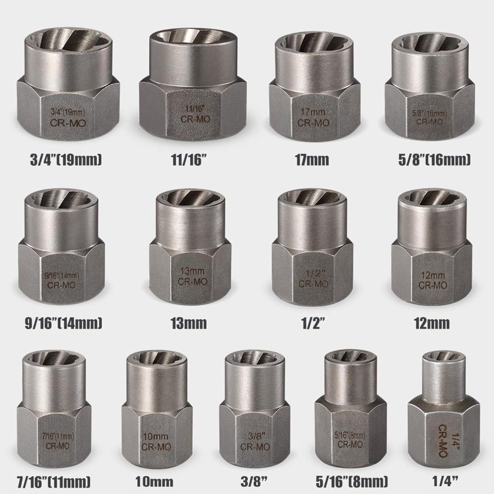 • All the bolt extractors are precision engineered to easily extract damaged bolts, nuts and screws even if they are stripped, rusted or frozen