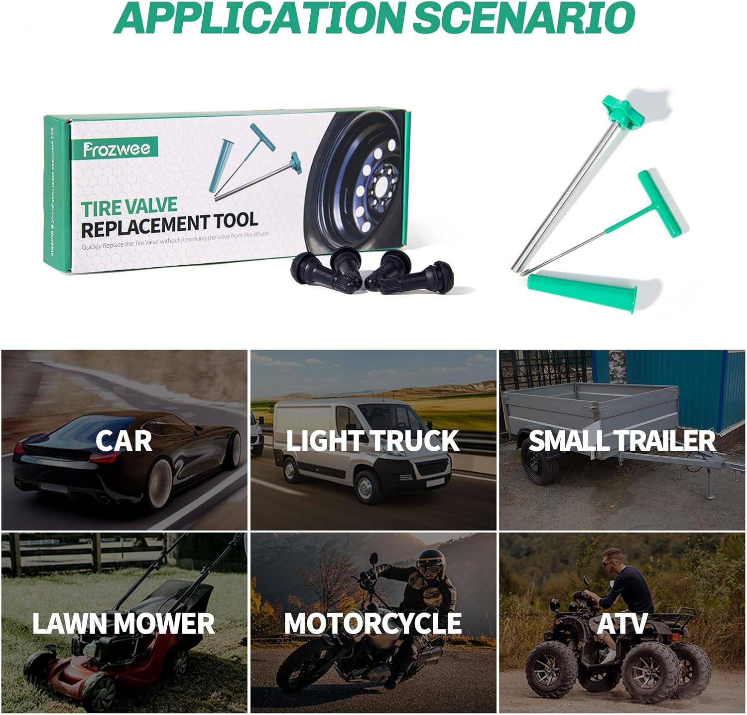 - Essential Super Tools: Very simple and quick valve replacement tool, even when the tire can not be simply removed for modification and repair, this set of tools can come in handy; Suitable for cars, light trucks, small trailers, unicycles, lawn mowers, ATVs and motorcycles